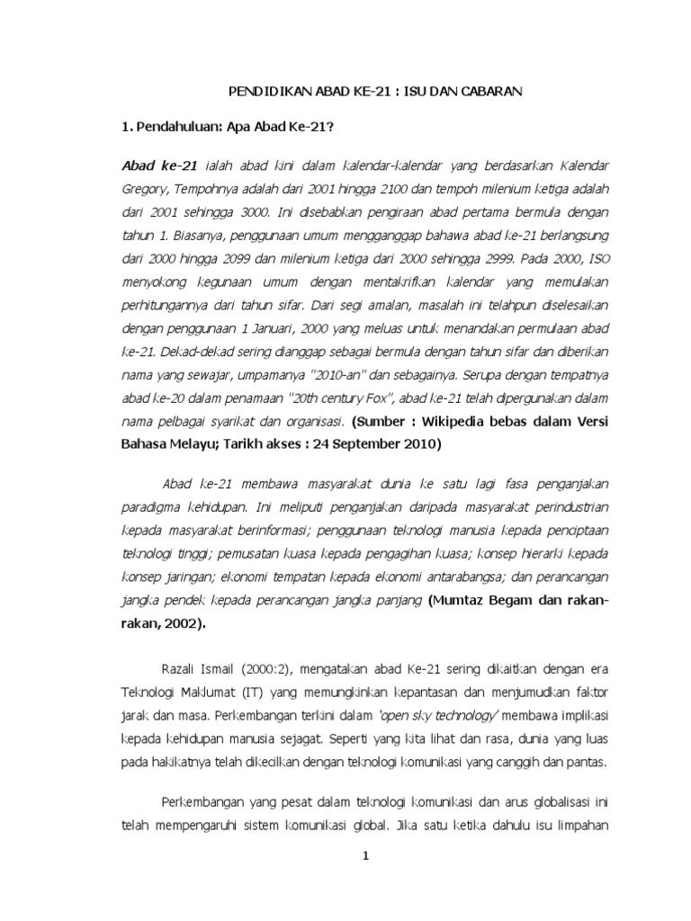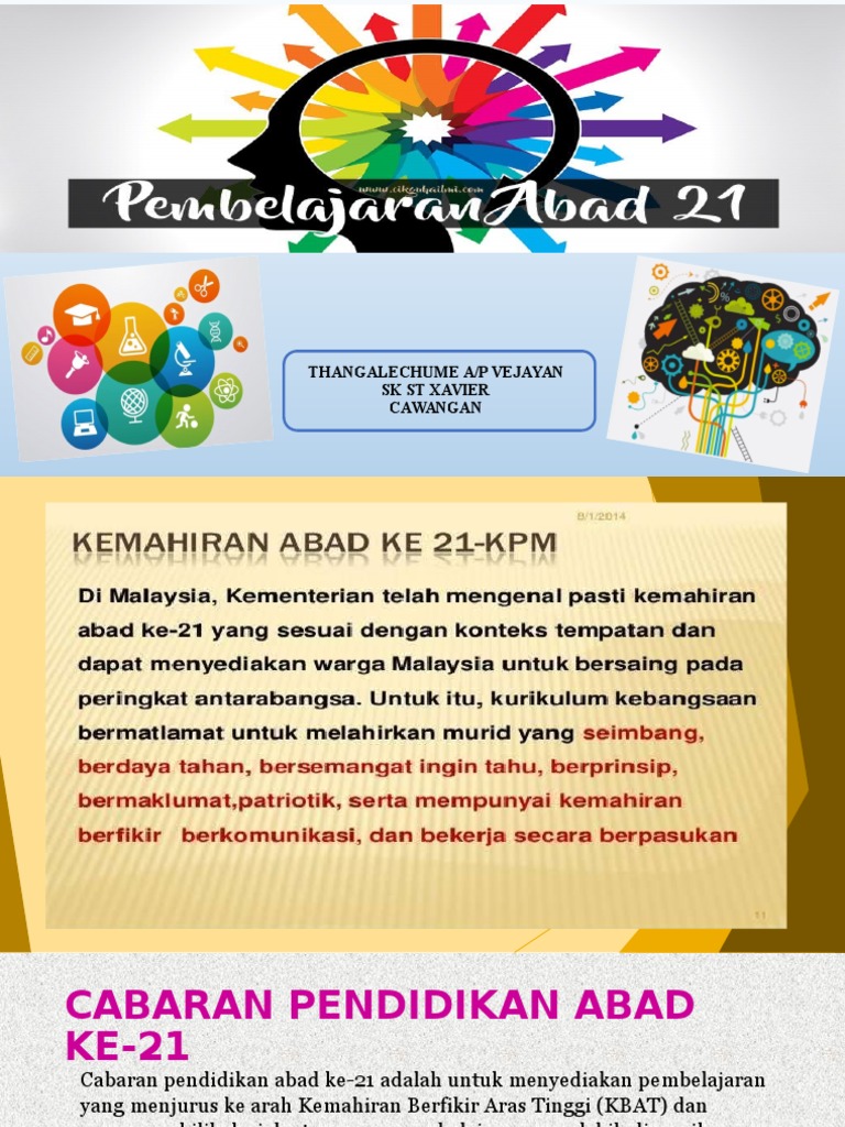 Pdf pendidikan abad ke 21 peranan bina insan guru big dalam menyediakan guru beraras tinggi. Hal ini disebabkan perkembangan teknologi yang semakin pesat dan seterusnya meningkatkan lagi cabaran pendidikan pada abad ke 21. Dalam abad ke 21 ini, pengurusan di setiap sekolah adalah lebih rumit di mana lebih banyak cabaran yang akan dialami oleh pihak pengurusan sekolah samada guru mahupun kakitangan sekolah yang lain. Pendidikan abad ke 21 lakarkan cabaran yang menakutkan. Generasi x ialah mereka yang dilahirkan dalam zaman penggunaan.